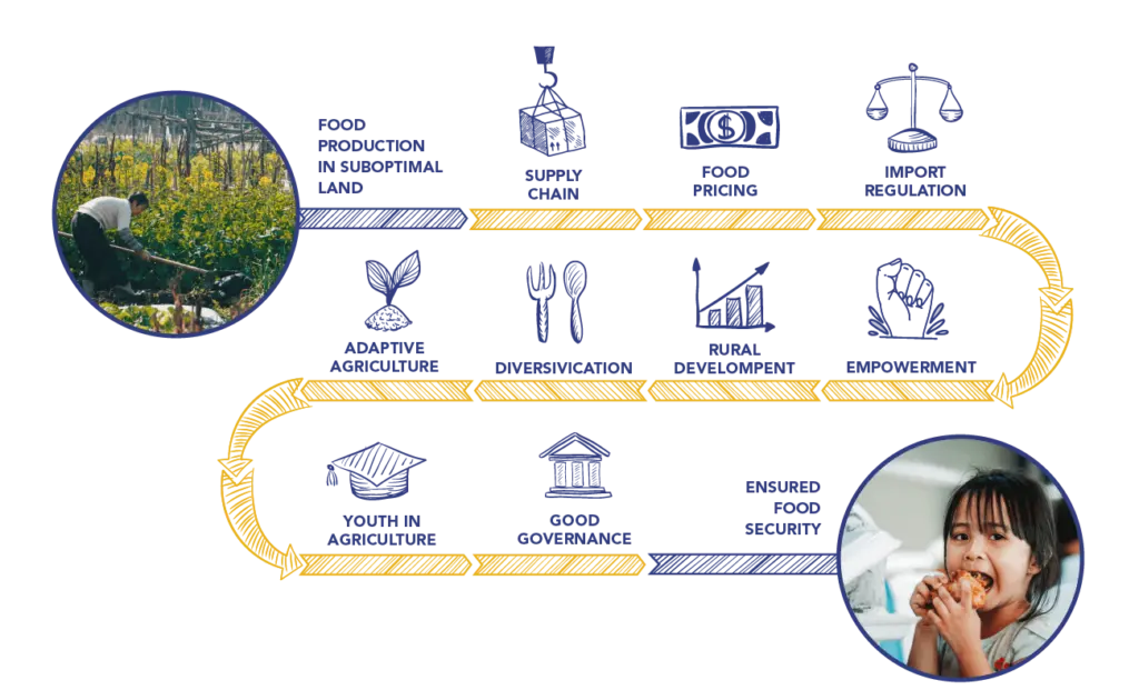 We need to strengthen the food and agriculture systems so that we can keep on living. This mainly includes dealing with the core of the system, i.e. the human.